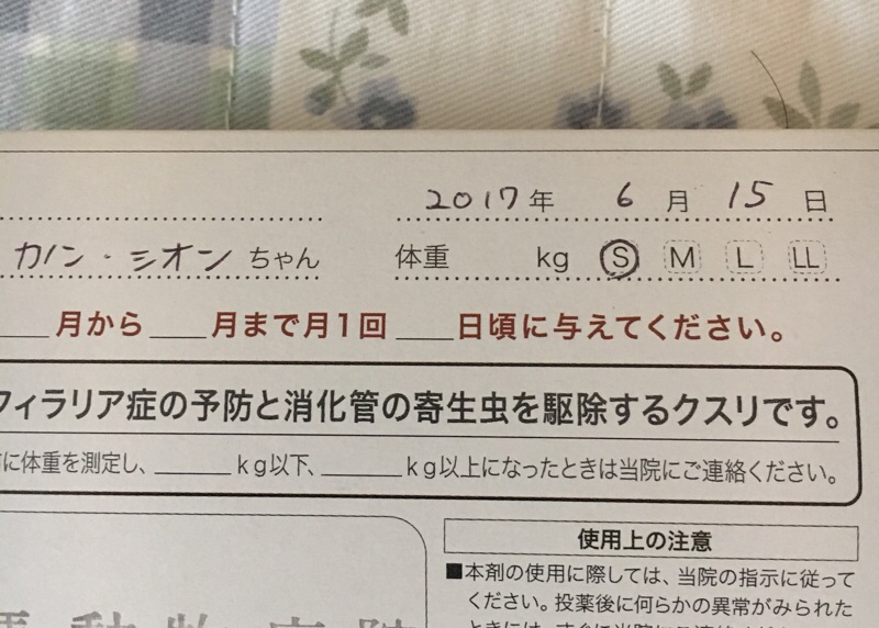 土曜日はフィラリア薬投薬。