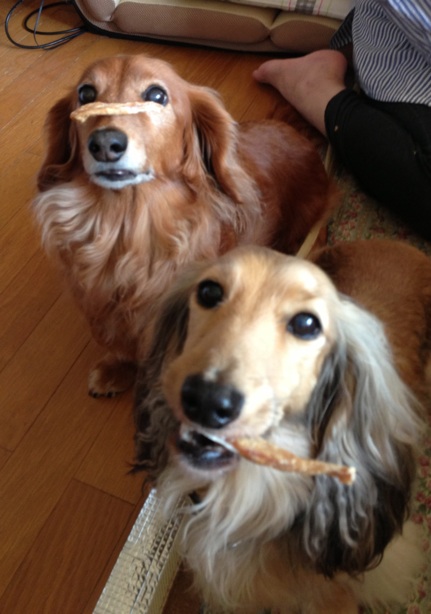あすかもダイエットしなくちゃいけないので、殆どオヤツを貰えないから興奮してるよ。
