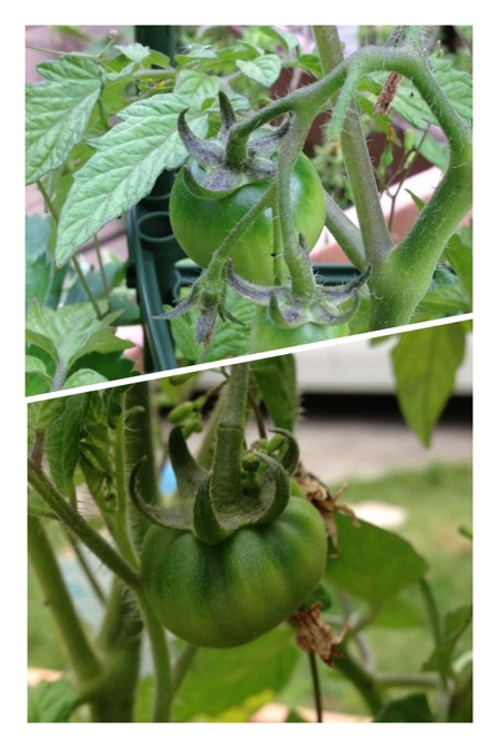 違う種類2種、片方は普通のトマトとミニトマトの間位の大きさになるはず…