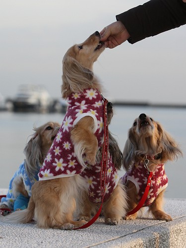 整列のご褒美おやつを貰う時、いつも順番が最後のしおんは待ちきれずに立ち上がるよ(笑)