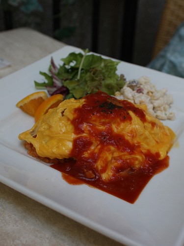 で、お腹が空いたのでパーキングから近場のお店のテラス席へ