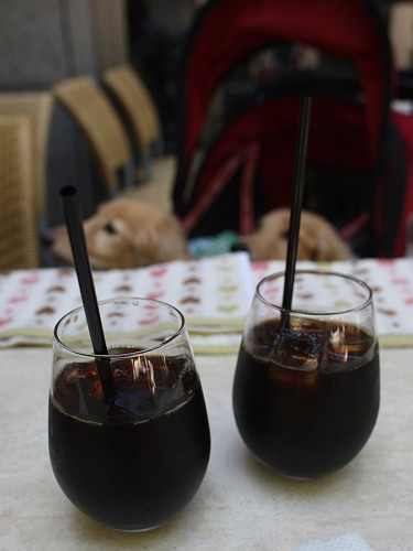 暑い~ほとんど日陰を歩いて、陽が当たる所は日傘でかりん達をカバー(爆)