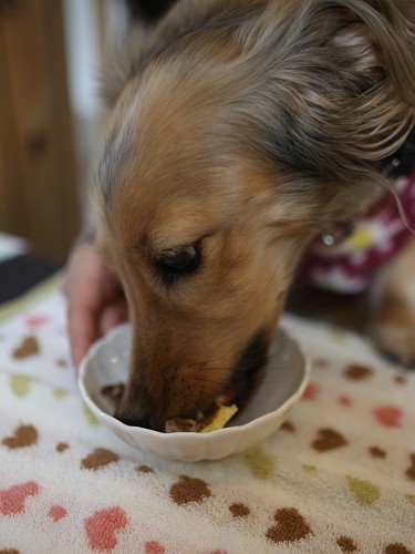 ご飯はペロリと食べて元気も出てきた、まだ歩けないけど動こうとするし、皆の所に行きたくてクゥーンと鳴いてるみたい(笑)