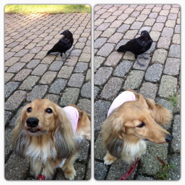 歩き終わってオヤツタイムしてたら、またカラスちゃんが直ぐ側の水道に来た。