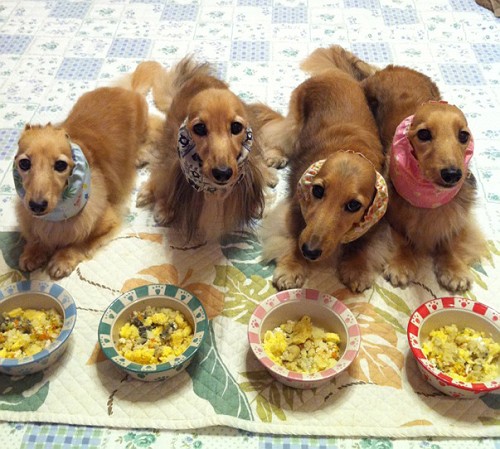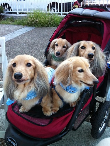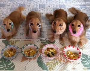 ペット博でもいっぱい頂いたけど、今日もスジ肉をいっぱい試食させて貰って大喜びなかりん達。