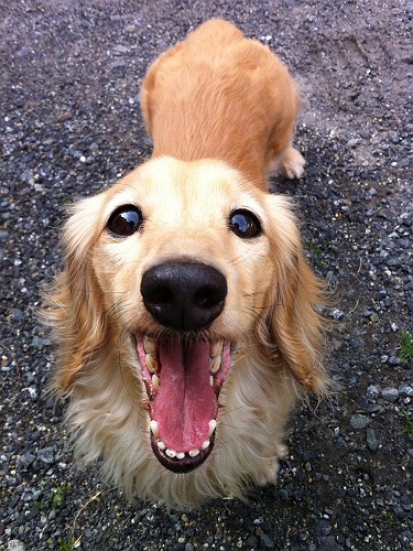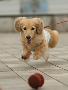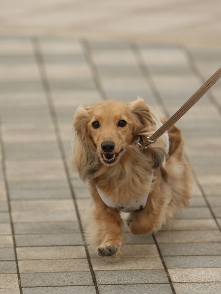 飼主二人が交代で遠くまで連れて行って走って帰ってくるの。