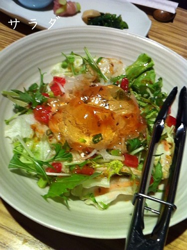 サラダのドレッシングの他に梅のジュレが乗ってるんだけど、美味しいの。