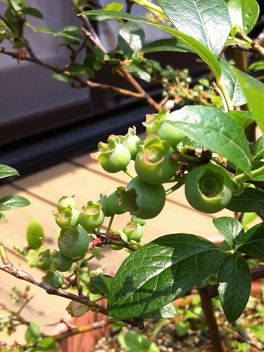 ゴールデンシャワーが満開、ブルーベリーもお花が終り実ができ始めました。
