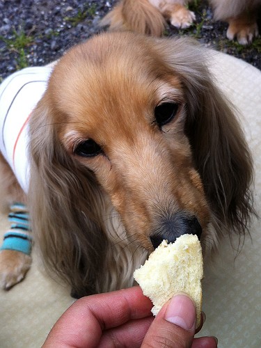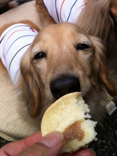 写真を撮っている意外にも飼い主二人掛で遊ばせてるので、食後のお腹には
