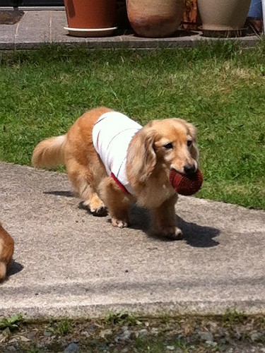 写真を撮っている意外にも飼い主二人掛で遊ばせてるので、食後のお腹には苦しい良い運動になりました(笑)