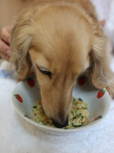 朝ご飯はいつも通りのフード量にしちゃったよ