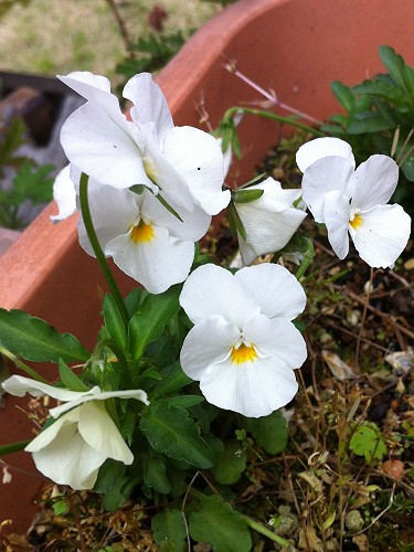 でもまだ霧雨程度だったので買って来た苗を植えて、伸び放題だったヘデラやゼラニウムをトリミング。