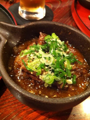 チケットのコース以外に、から揚げ、牛すじ肉の煮込み、2種類の海老串揚げ他数種類を別注文して食べたよ