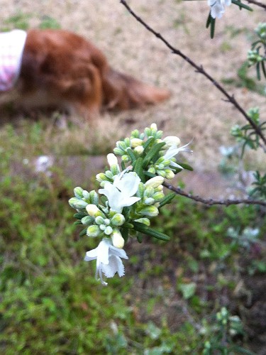 最近、庭の木や花を放置状態にしてしまってるけど、ローズマリーが花を咲かせてたよ。