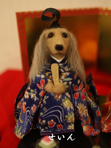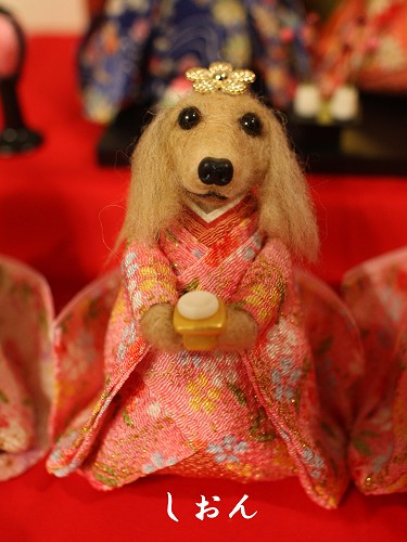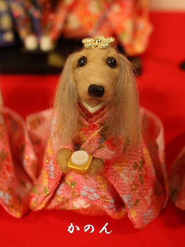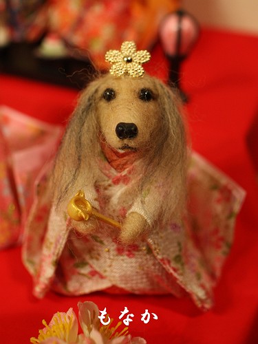 もうすぐ雛祭りなので、アンチョビママさんに頂いた手作りの『かりん'S羊毛お雛様』を飾ったよ~