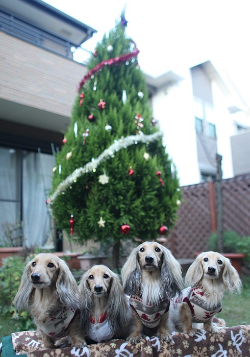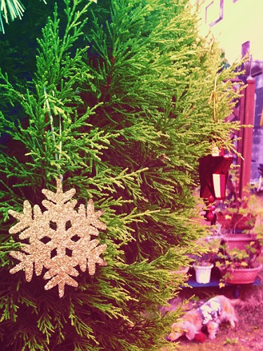 おとやんがやはり庭の木に飾り付けると言ったので、しばし飾りつけ~