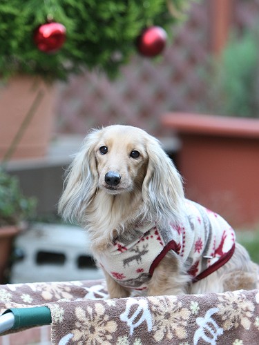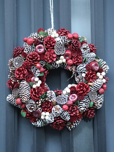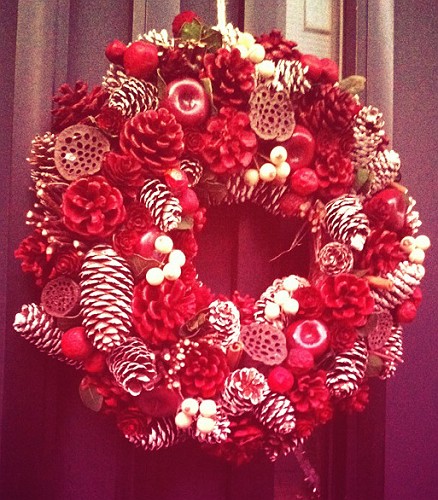 母の手作りリースを飾った初めの年に生なので野良猫ちゃんが飛びついて壊した形跡があったの・・・なので、手作りリースは部屋の中用にしたのです。