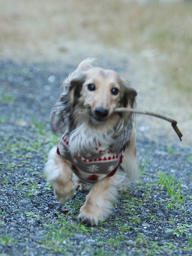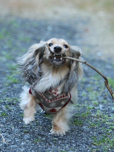 かりんが遊びながら枝を見つけて嬉しそうに咥えて持ってきたよ
