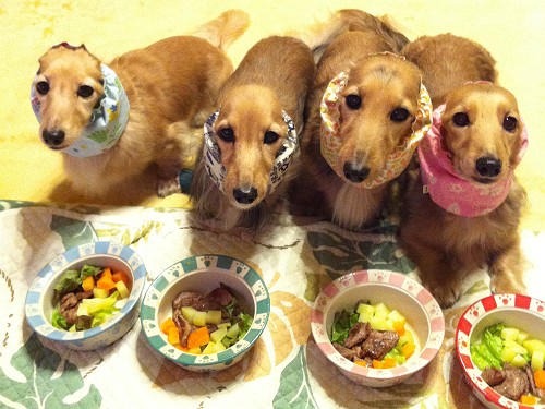 かりん達にはいつもの様にラム肉と野菜でディナー