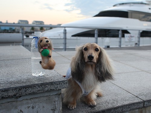 お散歩バッグから外して良く見える様にペットボトルに引っ掛けてみました。