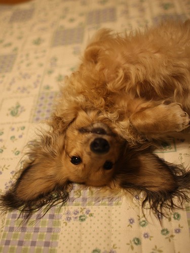 おとやんに呼ばれて側に来てゴロンするもなか&お座りのもなか