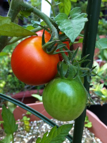 先日のミニトマトがちょっと色付いてきましたぁ~