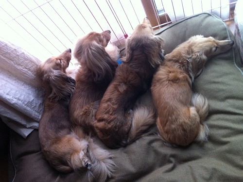 おとやんから帰るコールが鳴ると、一斉に窓の所に行って帰ってくるのを待つ4ワン。
