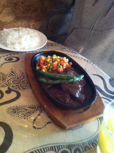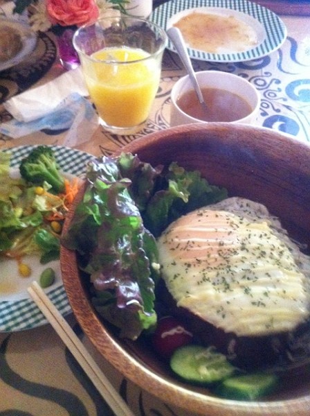 私はロコモコ、おとやんはステーキのデミグラスソース(iPhoneで撮影)