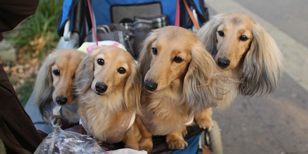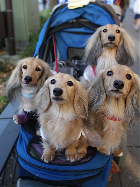 お散歩中もおとやんが一緒だと平日の通常散歩より頑張るかりん達。