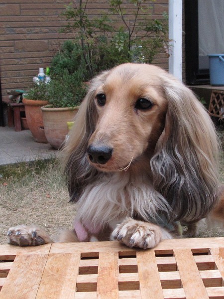 かのんは私の足元で辛抱強く待ってます。カメラ向けたら暗い顔になったけど・・・