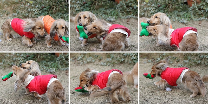 かりん達、洋服着せていても乾燥のせいでお散歩後は埃を吸ってる感じ