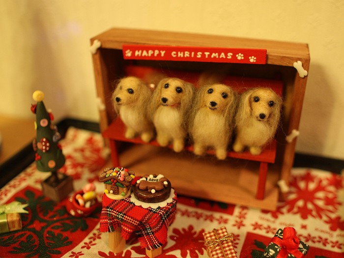 先日、アンチョビママさんに頂いた『羊毛かりんず X'masバージョン』を飾ったよ