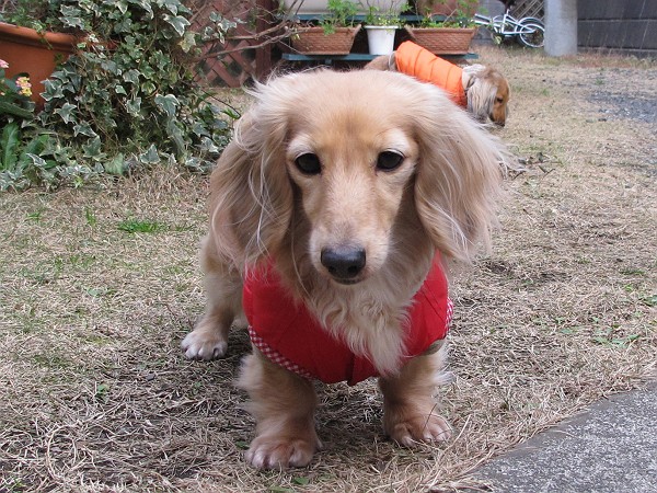 お昼を食べてから少しゆっくりして、寒いけどかりん達のお庭遊び~