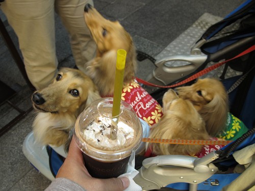 を購入。お店の方がかりん達の事に気付いて、パンの耳の部分をワンコ用にとプレゼントしてくれた(笑)