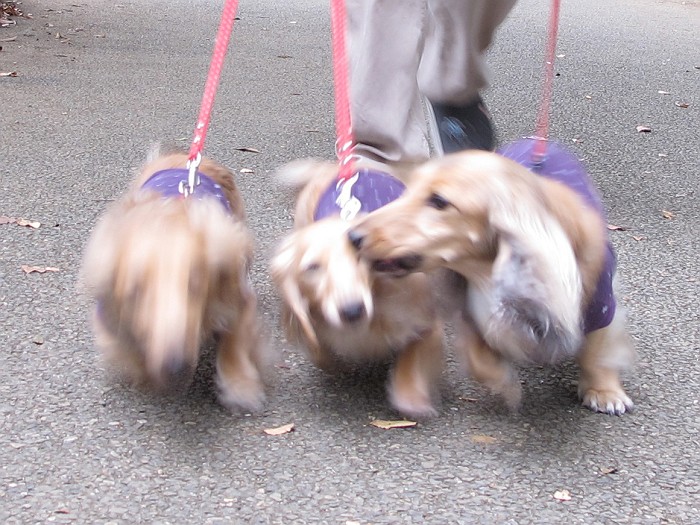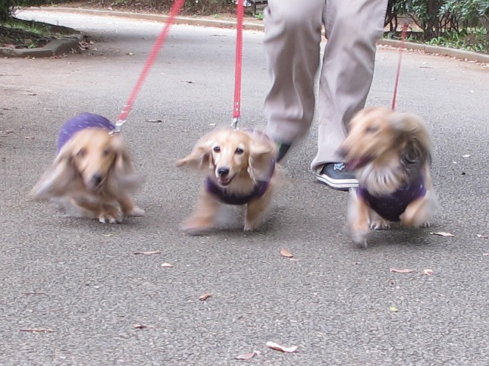 かりん達は久々の公園散歩で嬉しいのかグイグイ引っ張り目に歩いてた。