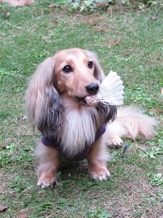 最後にバドミントンの羽を玩具だと思ってるかりんに渡すと、私に取られないように銜えてダッシュ~