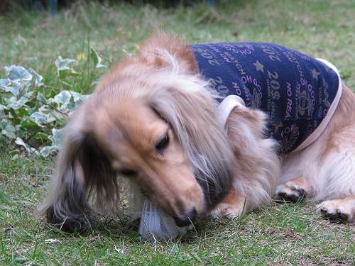 取りに行くと、銜えたまま猛ダッシュで逃げる-=≡ヘ(* - -)ノ