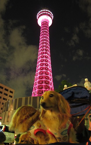 ピンクリボンかながわというのを下でやっていたのでピンクにライトアップしていたようです。