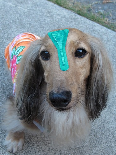 おやつに釣られて来たのにオデコにフロントライン乗せられて写真撮られて不服そうなかりん。
