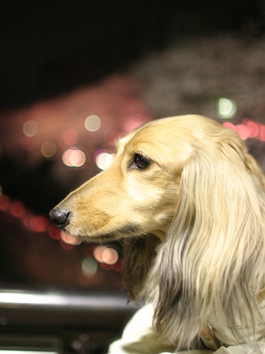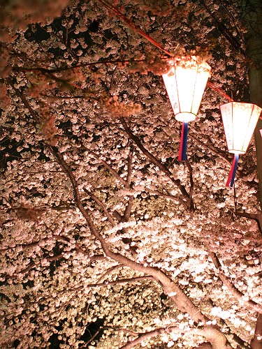今年は天候の悪さもあっていつ行くか悩んでたけど、今日しかないかなぁ~と思い、おとやんの帰宅を待って少し遅い時間になったけど毎年恒例の夜桜見物にGO