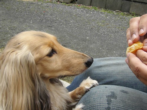 おとやんに剥いて貰うのを待つかりん。早く早くぅ~