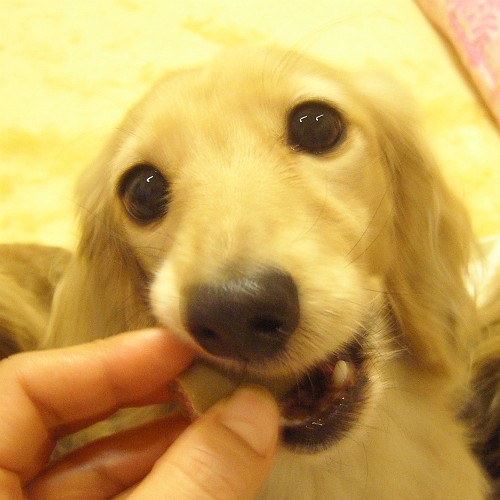 かのんの順番の時に少し『待て~』を長くしてたら、他のお客さん(若い男の人二人)が『よし』と言ったらパクッ・・・