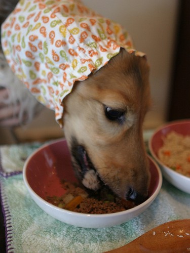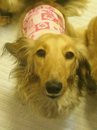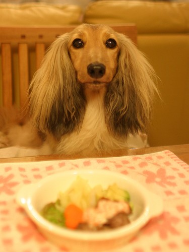 最初の写真の状態のまま、飼主がランチを食べ終わるまでお利口に待ってたよ(笑)