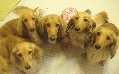はおやつに釘付け・・・しばらくしておとやんの帰るコールがあり、5ワンでお出迎え~