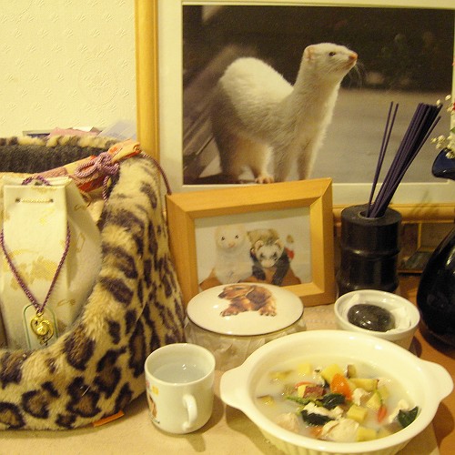 先日の病院で最近のフェレは我が家が飼っていた頃とは違う病気も増え、かなり若いうちから病気になる子が多いってR先生が仰ってた。