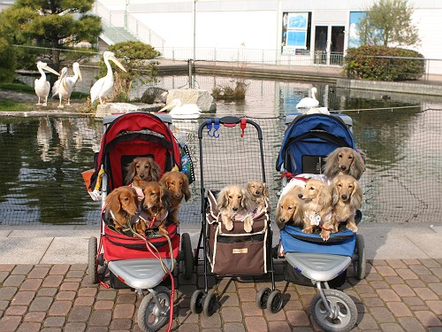10ワン皆でテクテク歩きながら芝生広場に行くよ~