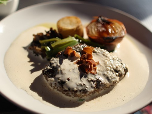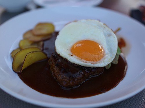 料理の写真は陽射しが強く白飛び状態